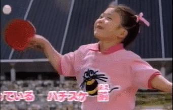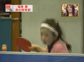 福原爱很小很小的时候,就上电视和大人们打起了比赛。