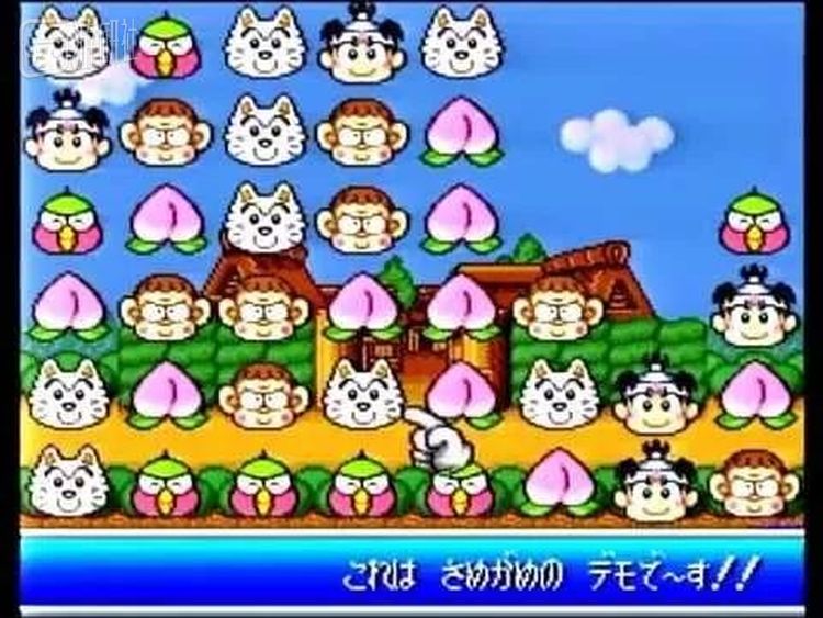 Hudson的这个游戏叫做《鲛龟》,是一个三消类的益智游戏,登陆在SFC平台上。卖点是集合了Hudson的全明星,包括了《PC猿人》、《大贝兽物语》、《炸弹人》等知名角色,当然中国玩家可能只认识炸弹人。