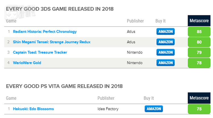 除了这四个平台之外,掌机平台的市场在2018年里继续减少。PSV上,全年只有一款女性向游戏《薄樱鬼 真改:华之章》(美版)拿到了75分。