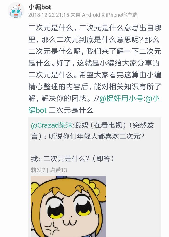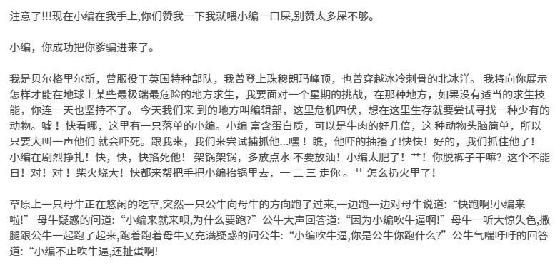 "小编体"泛滥到一定程度后,微博上甚至出现一个“小编bot”,精确地把握到了这种语言风格,将其精华提取出来不断重复。