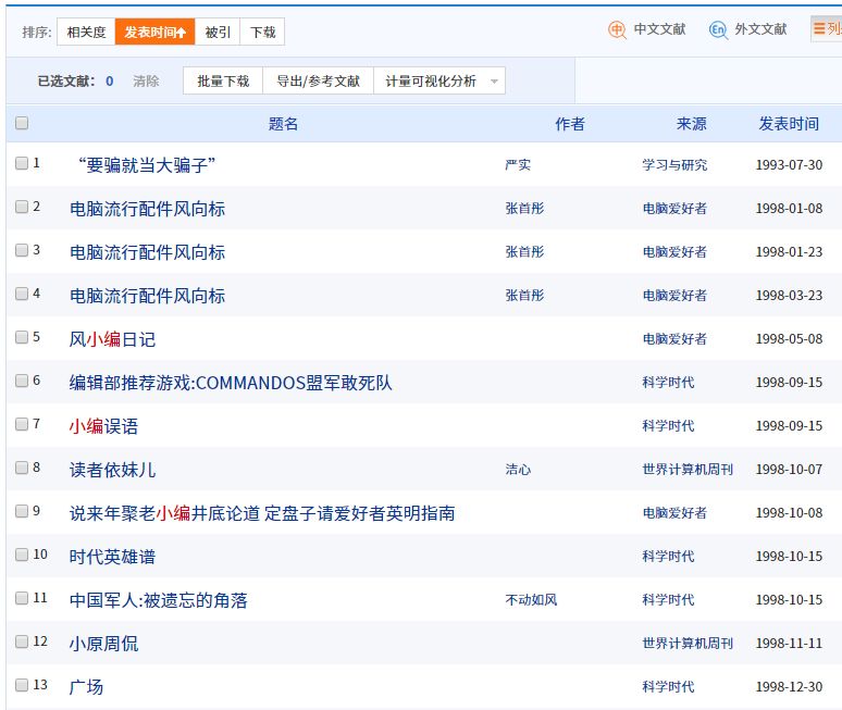 在知网上搜索一下期刊中的小编,按时间排序,基本就都是1998年算起的一批同类报刊杂志。