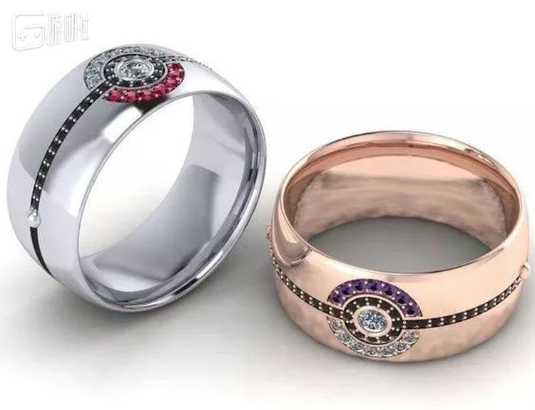 这种完全无法在设计上给人惊喜的套路倒是启发了一些珠宝商,他们在千篇一律的精灵球戒指盒里进一步加强宝可梦的存在感,用钻石在戒指上环绕出精灵球的形状: