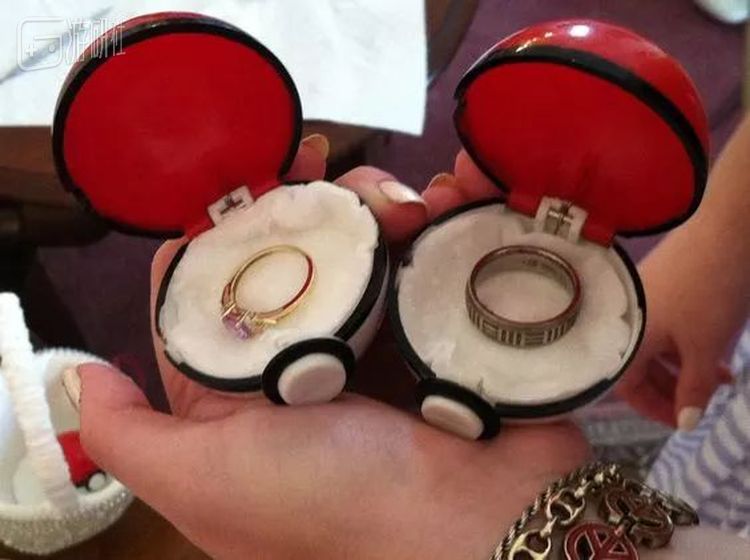 大家喜闻乐见的交换戒指环节却显得同质化比较严重。可能是因为戒指体积小这一特性太容易把握,大部分举办宝可梦主题婚礼的夫妇都遭遇了创意大撞车:用精灵球盛放戒指。