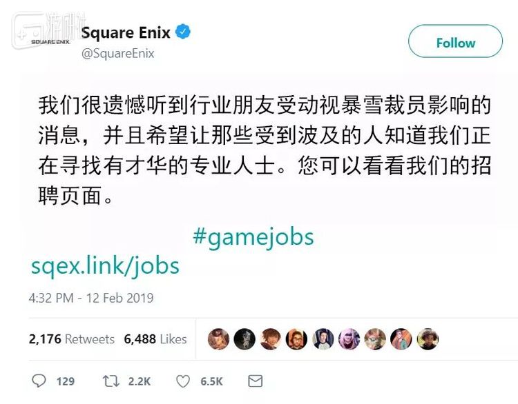 史克威尔艾尼克斯、黑曜石等则直接动用了自家的官方账号来招人: