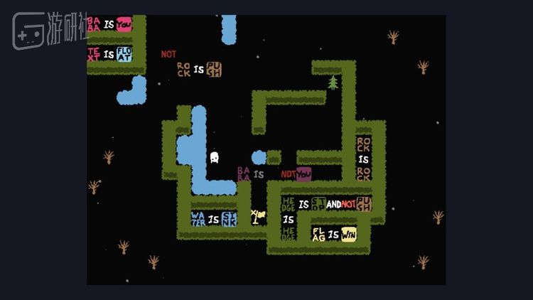 原来这个游戏的核心玩法,就是以推箱子的方式,改变句子的成分,从而更改游戏里一切元素的定义,解开谜题到达终点。