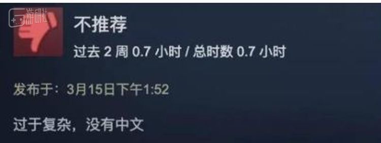 如果再仔细查看这些评测,会发现游戏刚发售的头几天里,只有一条“差评”,而这唯一的差评还是用中文写的。