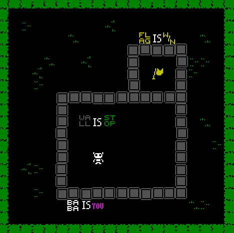 很容易,只要重新组合一下句子,把“Flag is Win”(旗帜是终点)改成“Rock is Win”(石头是终点)。 本来看似道阻且长的终点,忽然就近在咫尺,轻轻松松过关。