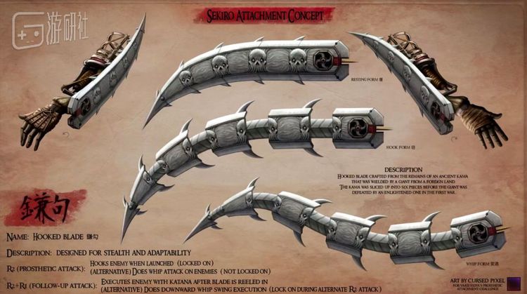 早在游戏发售前,油管上靠解读“魂”系列剧情而大火的Up主@VaatiVidya 就曾举办过一场“只狼忍义手设计大赛”,当时关于忍义手的详细资料还没有放出,只能以官方的预告片和游戏截图为基础来设计。