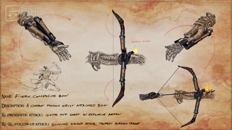 当然主角作为忍者,也必须配备远距离武器。玩家们想到的不是手里剑,而是弓:
