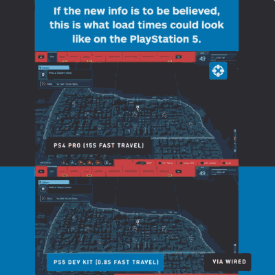 Mark Cerny在采访中现场用开发机和PS4 Pro同时测试《漫威蜘蛛侠》的读盘速度,原本15秒钟的传送Loading时间缩短为大约0.8秒,变化让人非常吃惊。