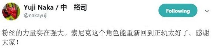 无论如何,这个决定显然得到了世嘉方面的大力支持。消息一出,多位参与了《索尼克》游戏制作的世嘉员工纷纷发推感谢,比如之前提到了中裕司,他也是索尼克的初代程序员。