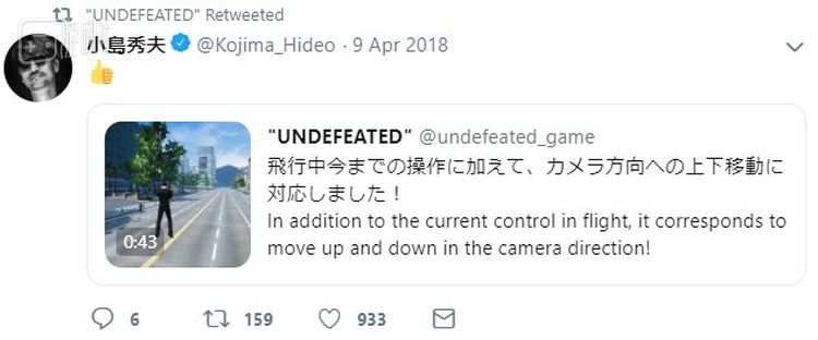 在2018年,已经有一定完成度的《UNDEFEATED》就曾经获得不少玩家的关注,连小岛秀夫也曾转发点赞过: