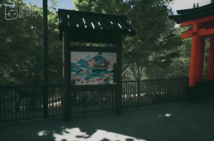 在一个“步行模拟器”应该做到的部分上,《Explore Kyoto's Red Gates》也完成得比较细致。你可以在其中找到现实中景区在交叉路口摆放的游览地图: