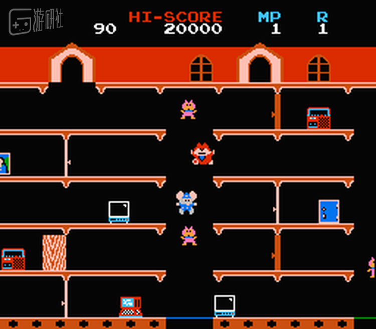 与《猫鼠终极游戏》相比,反而是红白机上另一款有猫、有老鼠的游戏更让我们熟悉,那就是俗称《猫捉老鼠》或者《快乐鼠》的日本南梦宫游戏《Mappy》。