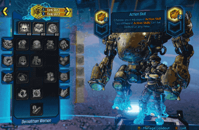 拿我主要试玩的新角色Moze来说,她的技能是召唤操纵一个叫做“铁熊”的机甲。Minigun、榴弹发射器和磁轨枪这样的武器可以任意组合装备在“铁熊”双手,每个武器还有属于自己的改造槽位。