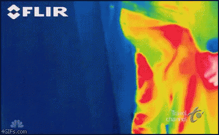 借助热力图上的颜色,我们可以观测到一个屁从较高温度(红色、橙色)向较低温度(绿色、蓝色)演进的过程;同时,除了温度从热变凉的线性变化外,期间周围微小的气流变化,会让屁的电磁辐射波长变得不稳定,热力图上则会呈现更加炫丽的色彩。