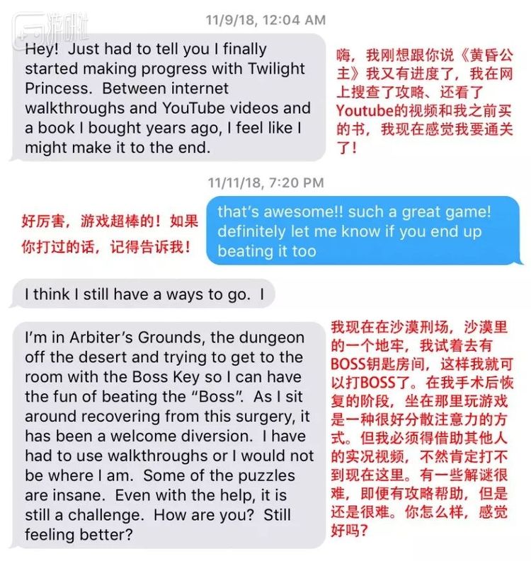 这种决心,也反映在外祖母玩《塞尔达传说:黄昏公主》上。据Chris所说,他的外祖母会定期和他发短信,汇报自己的游戏进度。虽然有时候得找他帮忙完成1、2个挑战,但99%的挑战都是外祖母独自完成的。