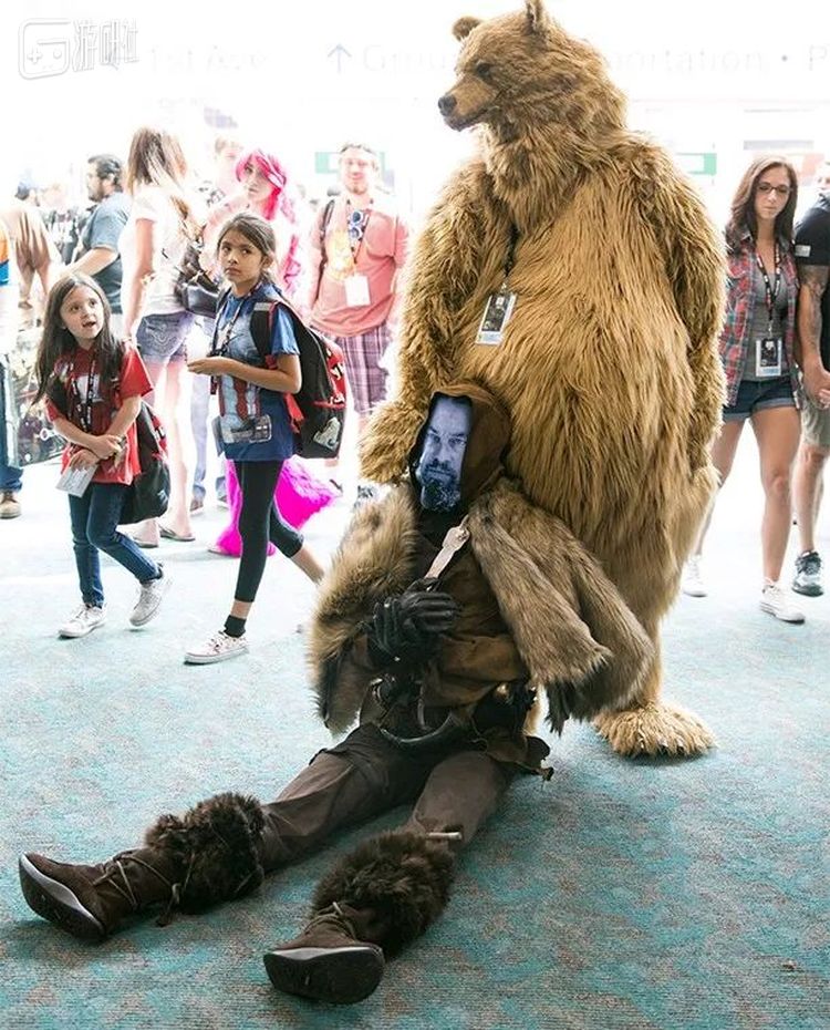 他Cos过很多自己喜欢的角色,龙猫、无脸男、地狱男爵、楚巴卡、凯洛·伦,甚至是电影《荒野猎人》里把小李子弄得半死的那头熊。
