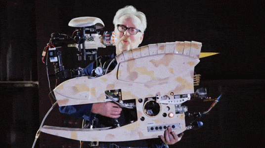 最近亚当还完成了另一个长期项目,那就是还原了《第五元素》里大反派索克手里的高科技武器,可以发射火箭弹、火焰、冰冻喷雾、弩箭、网兜,还可以自动跟踪目标的“要你命3000” ZF1枪。