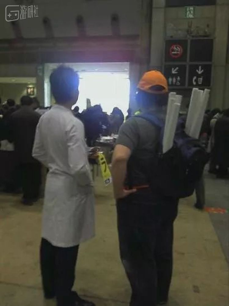 一道光从漫展的展厅通道口射入,一胖一瘦,两个教科书式的宅男煞有介事地望向前方,在漫展这样一个轻松的环境里出现这样一个神圣感的场景,颇具反差的喜感,人们调侃地称这张照片为“宅男漫展之光”。