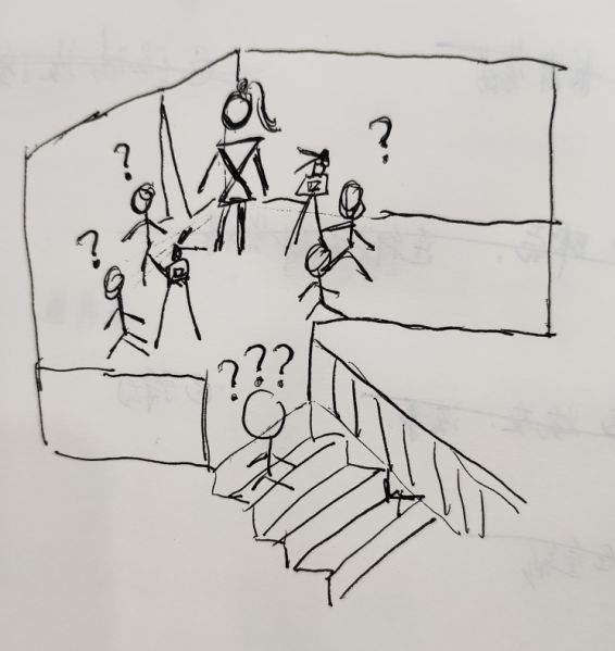 我佯装镇定地走下楼梯,试图逃离这片奇怪的是非之地。一路上,不断还有从楼梯走上来的神秘顾客。他们神情木讷,对我又似乎带着些鄙夷,眼神像是在说: