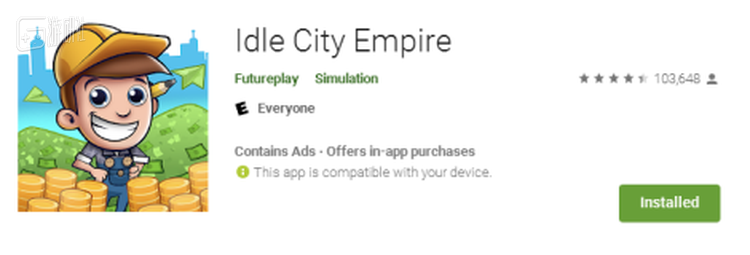 《放置城市帝国》在谷歌商店里有10万多条玩家评价,综合评分4.4。在竞争激烈的手游市场里,一个放置类游戏能取得这样的数据,是一个相当不错的成绩了。