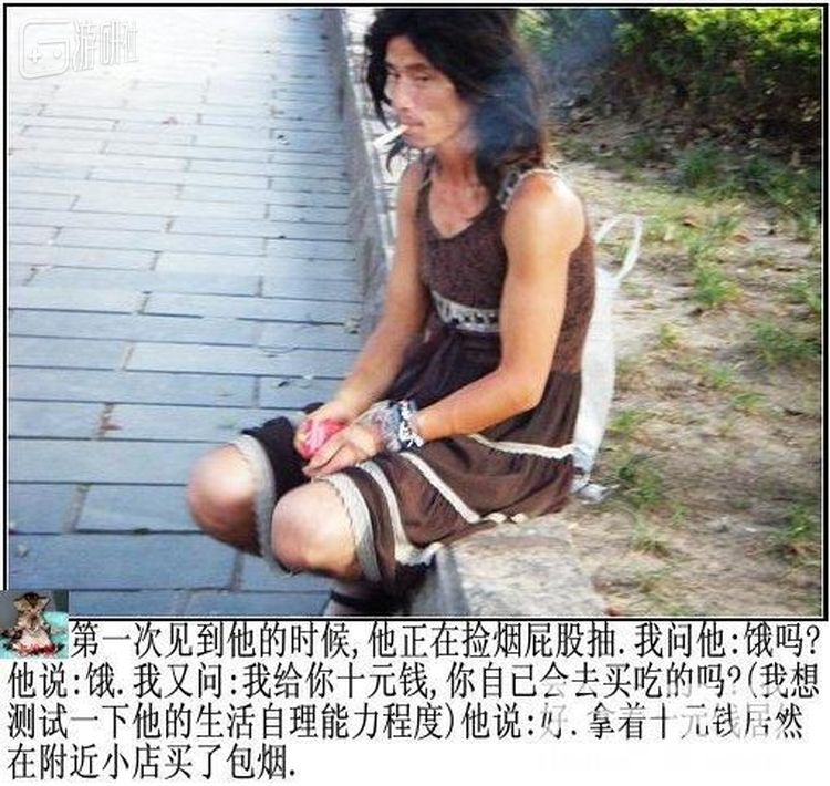 此时的犀利哥,虽然因为长期流浪导致自我封闭,但仍然保留了一些社交能力。