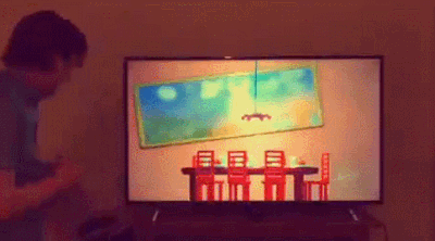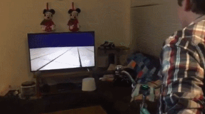 上面的这个超现实小魔术,其实是把手柄放在了电视后面,而游戏中所有的效果其实是预先设计过的。