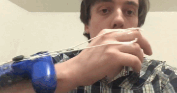 Tyler Whittaker还喜欢自制游戏外设,比如利用几个纸盒和两根棉线,就可以做出一个弓箭外设。