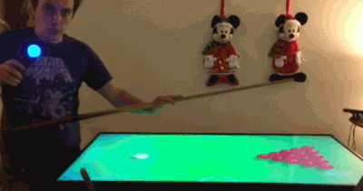 在另一个项目里,Tyler Whittaker把电视变成台球桌,手拿着球杆打着空气台球,仿佛游戏能够检测到现实中的球杆。