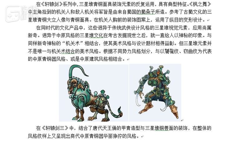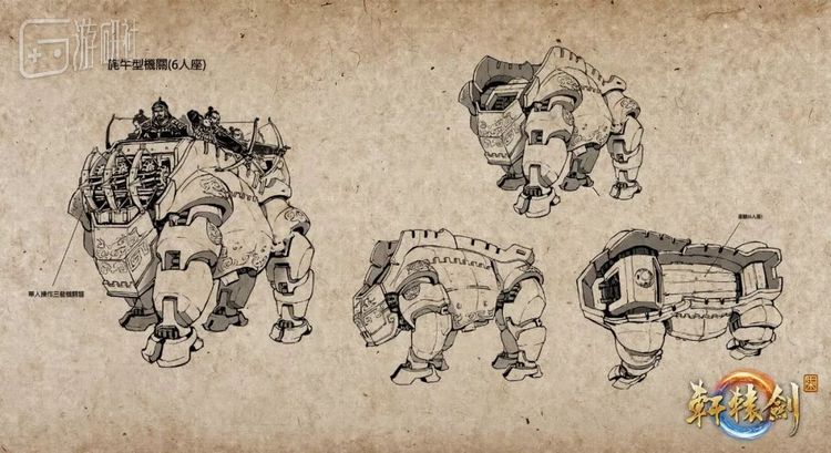 从《轩辕剑肆》的各种机关兽的设定中,可以看见不少古代材料的影子:青铜外壳、木头接榫、草绳固定。这些东西确实来源于2000多年前的秦末,然而这样一堆看起来并不靠谱的东西,却能载着主角们飞天遁地,开炮轰人,无所不能。