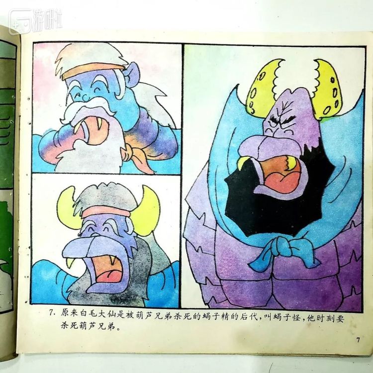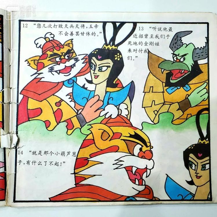 以上三幕,分别出自《葫芦娃大战九尾蝎》《金刚葫芦娃大战虎魔王》《葫芦娃大战圣斗士》三本连环画,很显然,最后一本最为迷人。