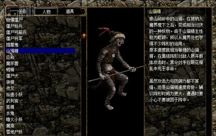 貔貅、山猫精、飞刀小妖就是很典型的一种杂兵。它们总是成群结队的,不会看到你就一拥而上,而是围着你打转。你要是攻击,它们便散开;你就不管走人,它们就追着你打。