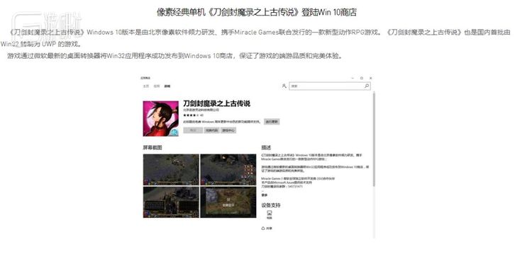 值得一提的是,多年以后《刀剑封魔录外传:上古传说》后期还更新了Win10的适配版,并登陆Win10商店。