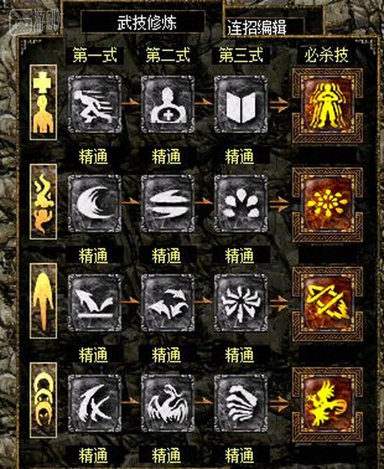 三名角色,四系共有十二招,学满前三式就送酷炫必杀技,有硬直、有浮空、有投技、有吹飞、有飞行道具和击倒,没有冷却时间。面对敌人,可以格挡,一闪,花式秀操作。