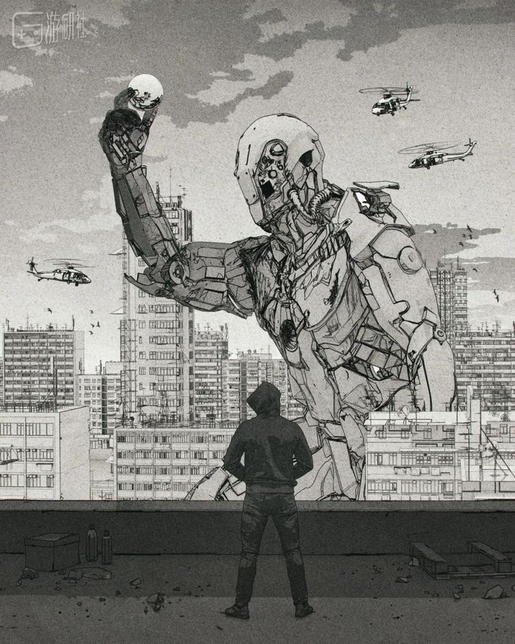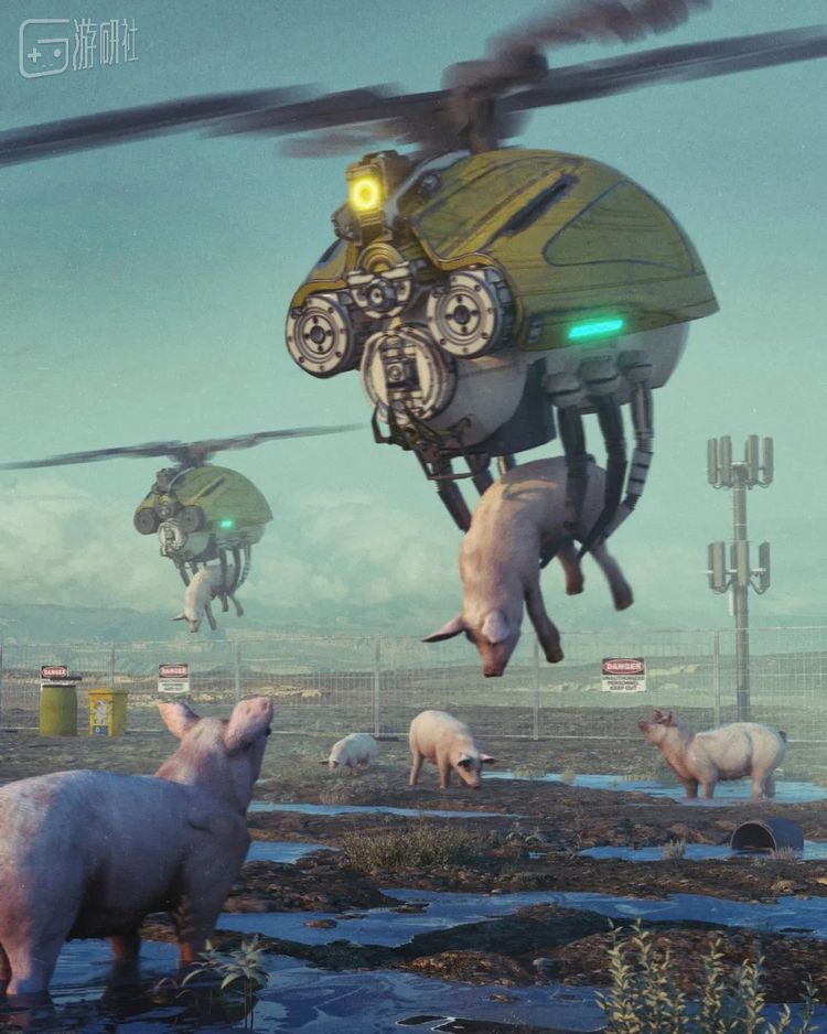 他的作品中充满了未来、科幻、末世和机械美学,有种混乱古怪的吸引力。