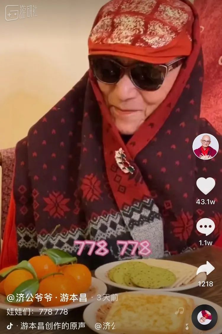 作为开场白,“起来搞点夜点心778”成为这个系列视频的灵魂,也在网上逐渐成为一段很流行的话。甚至连如今80多岁的济公扮演者游本昌都受其影响,在几天前的一期视频中,也用起了“778”的梗。