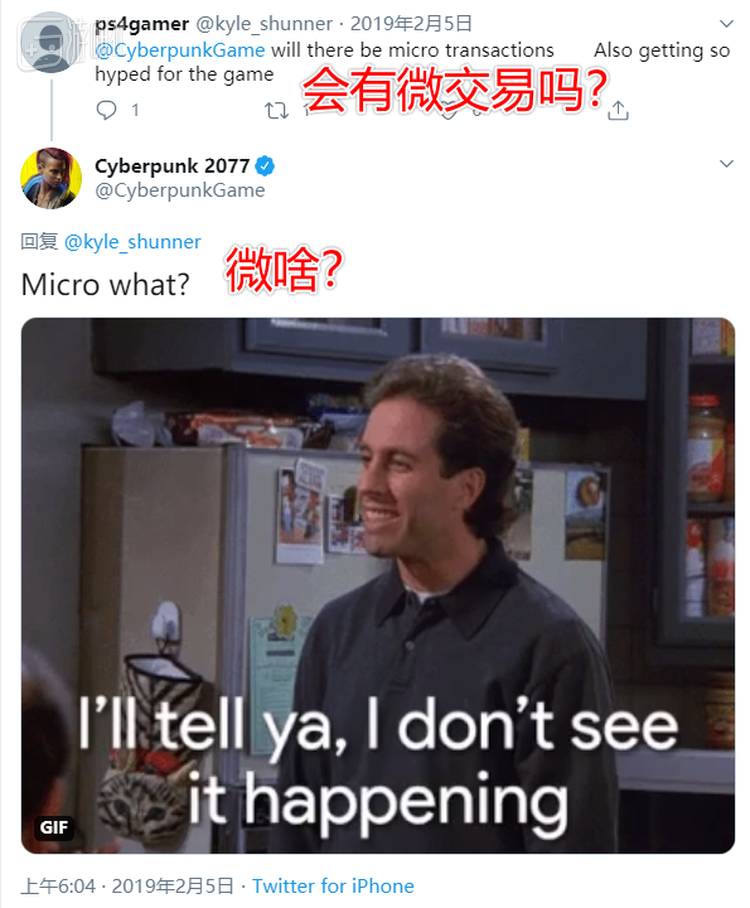 《赛博朋克2077》公布之初,就承诺不含微交易。前两天游戏的分级信息公布时,因为其中含有“游戏内购买”内容,马上就有CDPR发言人出面澄清,说那个只是付费DLC,不是内购。
