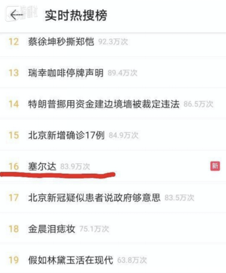 端午假期,“塞尔达”突然上了微博的热搜榜。