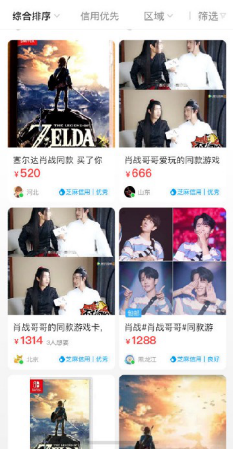 更有甚者,这场风波还激活了不少网友们的商业才能,闲鱼上出现了大量带着“肖战同款”字眼的高价旷野之息卡带,不少人守株待兔,希望能等来不明就里的粉丝们。