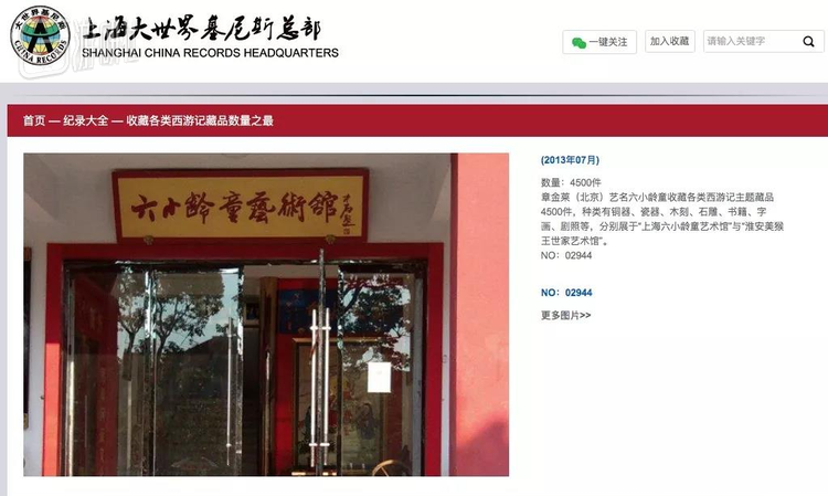 到了2016年2月3日,六小龄童创造吉尼斯世界纪录,《西游记》藏品数量则变成了1508件,时隔三年藏品数量缩水三千件。
