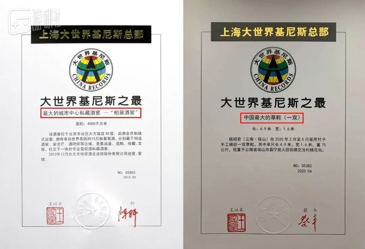 以往基尼斯证书上有一种模棱两可的标准是“最大的某某某”,这给了人们无限的延展和想象空间。也是如今它被多添加的几个字,就变成了“中国最大的某某某。”