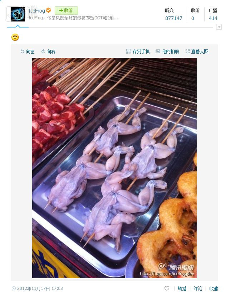 当时比较轰动的还有2011年DOTA作者冰蛙IceFrog的入驻。冰蛙当时常使用中文爆料DOTA和DOTA2的消息,还会分享一些接中国地气的生活内容,坐实了中国文化爱好者的形象。