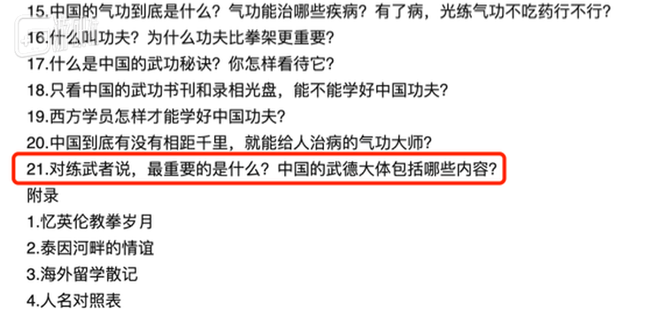 马先生甚至出了本叫《我在英国教功夫》的书,至今还可以在亚马逊上搜到,对应的中文版也在国内有售。在整本书的最后,马先生还特意用了一章来解释“中国的武德是什么”,重视程度可见一斑。