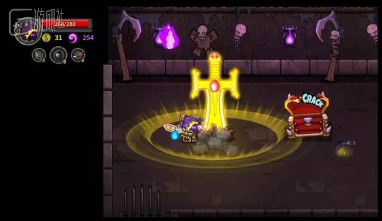 克制,是我玩《失落城堡》的最大感受。玩家在初期比较难感受到那种让人眼前一亮的特色,特别是在玩过《以撒的结合》《挺进枪牢》《盗贼遗产》甚至手机游戏《英雄攻城》后。在后面这些游戏中,你一开始就能发现一些鲜明的特点。而在《失落城堡》中,更多的是一种易于上手的接地气感。至于同类游戏中“丰富多彩”的变化,在游戏中体现得并不明显。刚上手游戏时,你基本不能看到会让你脱胎换骨的强力武器和道具,换啥都觉得没啥质变,技能树上也全部为被动技能,以至于比起同类游戏,《失落城堡》给我的第一印象是单调。