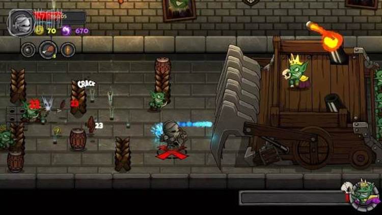 《失落城堡》的玩法很好描述,基本上能直接套用Steam平台上的官方介绍:这是一款包含了roguelike随机元素的动作冒险类游戏,玩家用随机拾取的装备、道具和宝物挑战盘踞城堡的敌人。死亡后只能从头再来,但可以用死亡前获得的魂来强化技能树,以此获得永久的提升,让死亡变得有价值(这方面参照了《盗贼遗产》)。