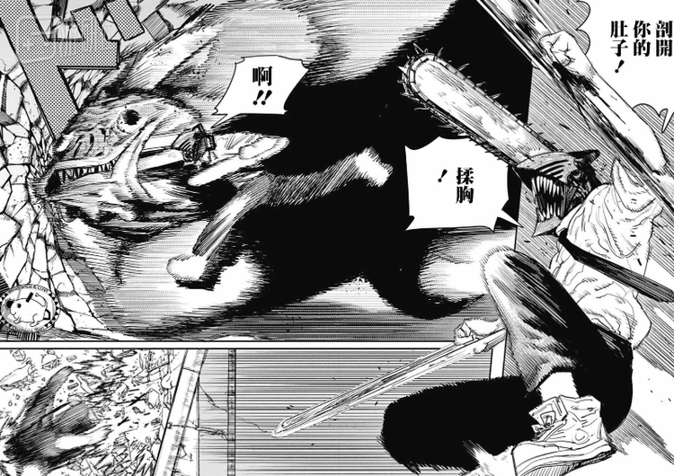 尽管《电锯人》的“自由程度”不比《炎拳》,但仍然在一众少年漫中显得清新脱俗。例如,主角的初期核心动力简单直白到你无法预测他的下一步动作,和其他热血漫比起来,场面有时会荒诞到像是一场反讽。