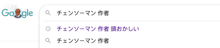在国内搜索引擎上搜索“藤本树”,联想词会是“我的精神病人”(原梗是我的超人),用日文搜索引擎搜索”电锯人“,会联想出“作者 疯”。