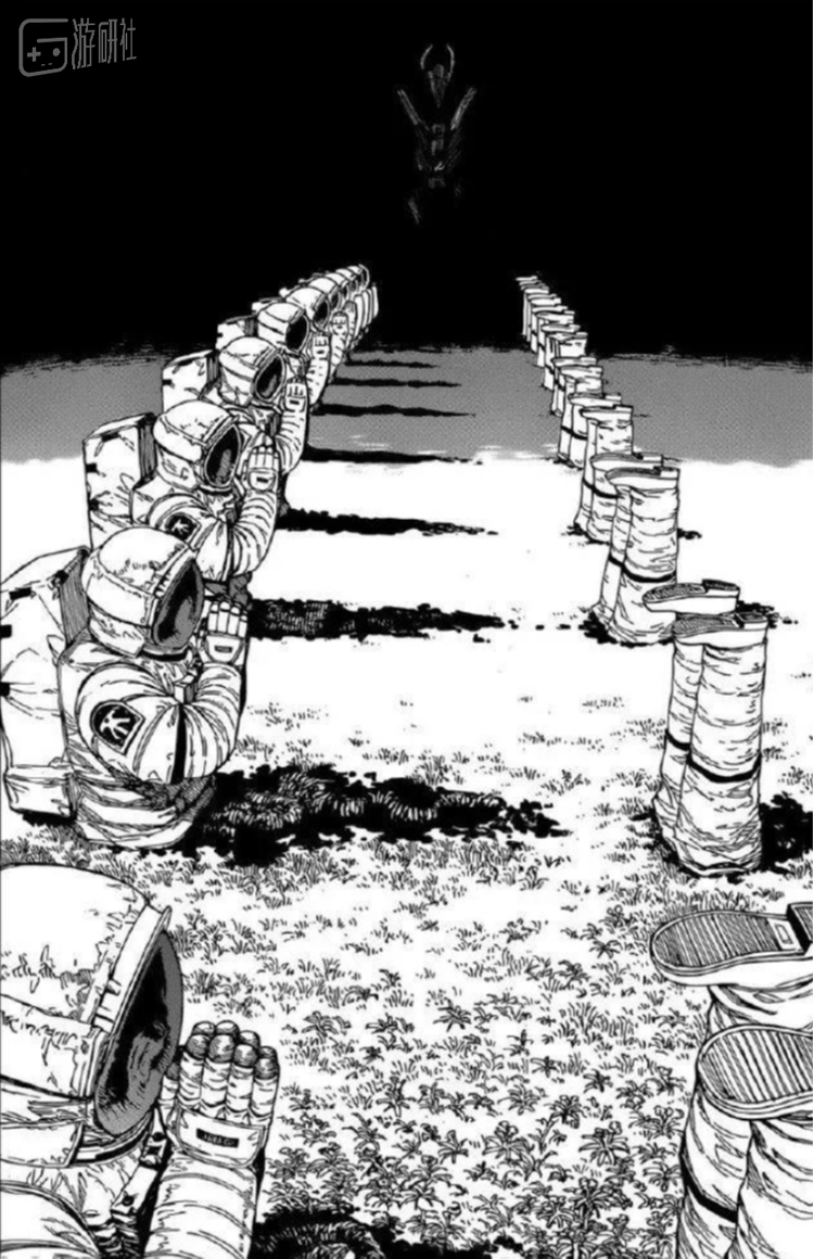 例如,漫画中一位象征黑暗的恶魔登场,藤本树以被腰斩、双手合十的宇航员给它铺上红毯,渲染恐怖气氛。