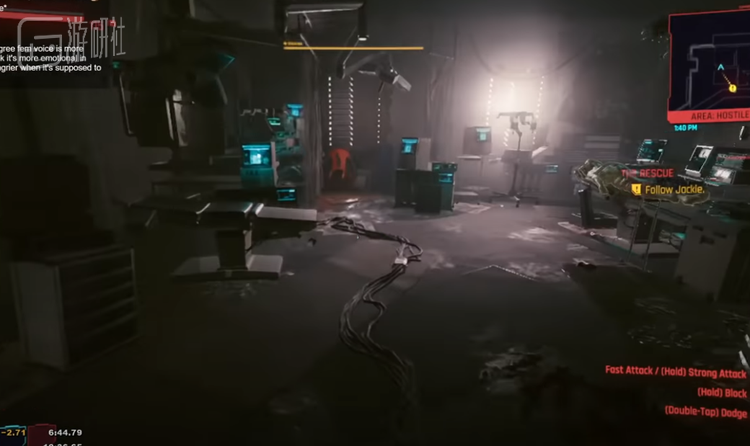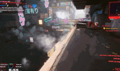 突破点出现在V和杰克一起到清道夫的老窝救人的部分,这里玩家终于可以使用武器并攻击了,也就意味着可以使用游戏中的一个花手漂移bug了。